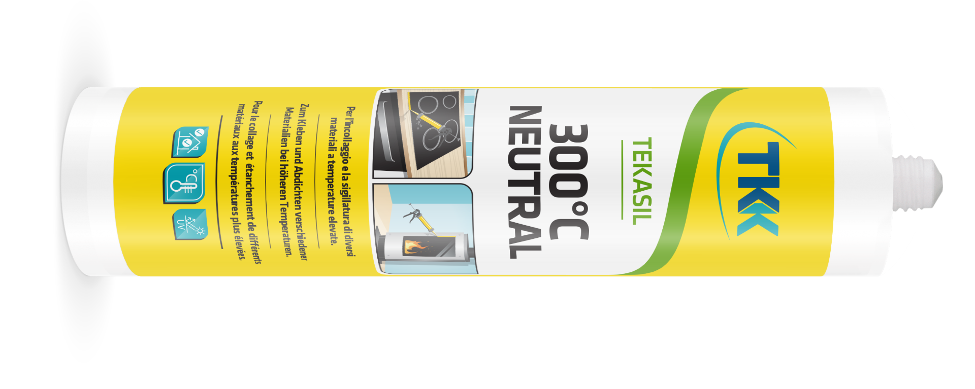 Tekasil 300 ° C Neutral es un sellador de silicona neutra permanentemente elástico, de un componente utilizado para el sellado de juntas expuestas a altas temperaturas.
